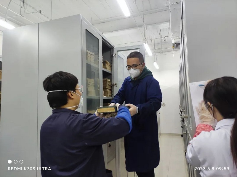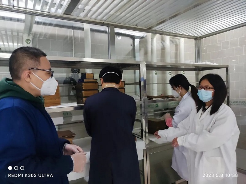 为深入学习宣传贯彻党的二十大精神,深入开展学习习近平新时代中国特色社会主义思想主题教育,切实将古籍文献保护意识由“抢救性修复”向“预防性保护”转化,5月8日,天津博物馆图书资料部联合文物保护技术部共同对馆藏古籍文献进行集中消毒杀菌,此次消杀范围包括调拨的古籍文物、天津地方文史以及“缥缃琳琅——天津博物馆典籍文化展”(暂定名)部分展品等珍贵的文献资料近400册,旨在通过现代科技手段,实现古籍文献“杀虫、防菌、防酸化、防氧化”的综合保护,以确保古籍文献的安全性。