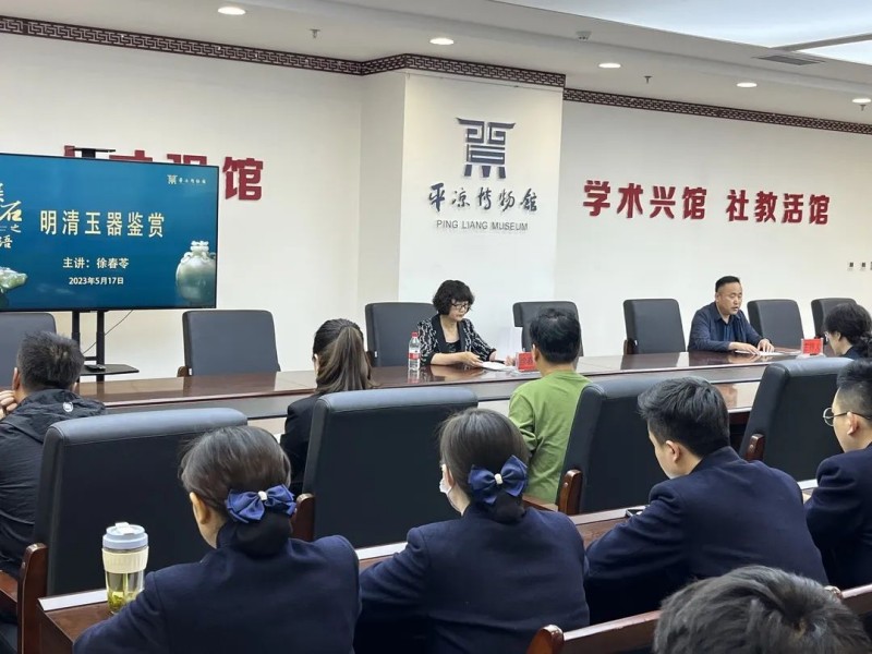 结束紧张的布展工作后,在天博业务老师们即将返津前,器物研究部主任徐春苓应邀做客“平博讲堂”,为平凉博物馆业务人员作了“明清玉器鉴赏”主题讲座。从玉器的发源到时代特征,从天博藏玉的概况到这次展览的策展理念和思路,徐主任旁征博引,娓娓道来。