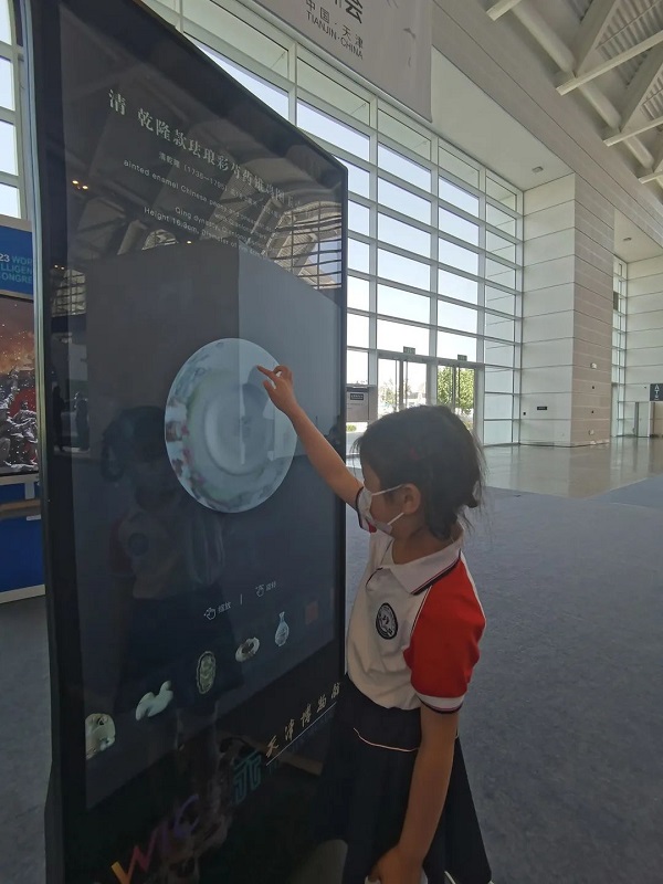 天津博物馆也为与会观众带来了数字化展示体验,体验区位于S8观众休息体验区。