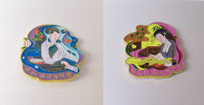 这两款产品的文物原型为馆藏书画冷枚 春闺倦读图和禹之鼎 闲敲棋子图画作,设计师提取画作中仕女形态,结合珐琅彩制作工艺搭配艳丽的色彩,造型精致,给人带来耳目一新的感觉。