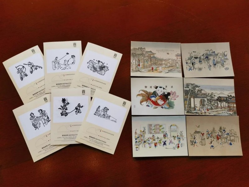 这款产品原型是馆藏杨柳青木版年画,年画不仅继承了宋、元绘画的传统,同时还吸收了明代木刻版画、工艺美术等表现形式,创立了题材鲜明、活泼、喜气吉祥的独特风格。杨柳青年画在天津文化发展史上占有重要地位,画中场景尽显民风习俗魅力,是一张让外地游客了解天津的名片。该产品一套六张,正面是馆藏年画,背面留白处可以在盖章机中盖上相应的年画人物印章。(具体盖章地点请咨询店内工作人员)