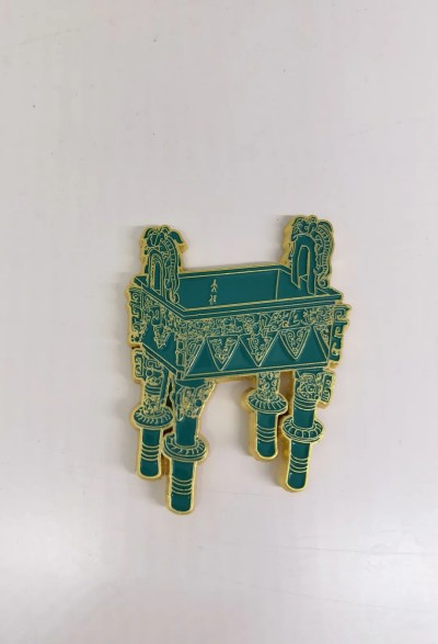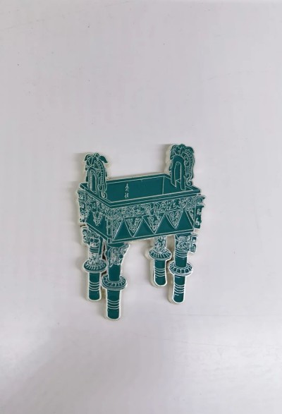产品的原型是馆藏西周太保鼎,这是一件珍贵的青铜重器,造型雄伟,工艺精湛,鼎口双耳上浮雕双兽。这款冰箱贴在细节处高度还原了器物形制,设计师用金、银色线条勾勒,在符合大众审美需求的同时形成不一样的视觉感。