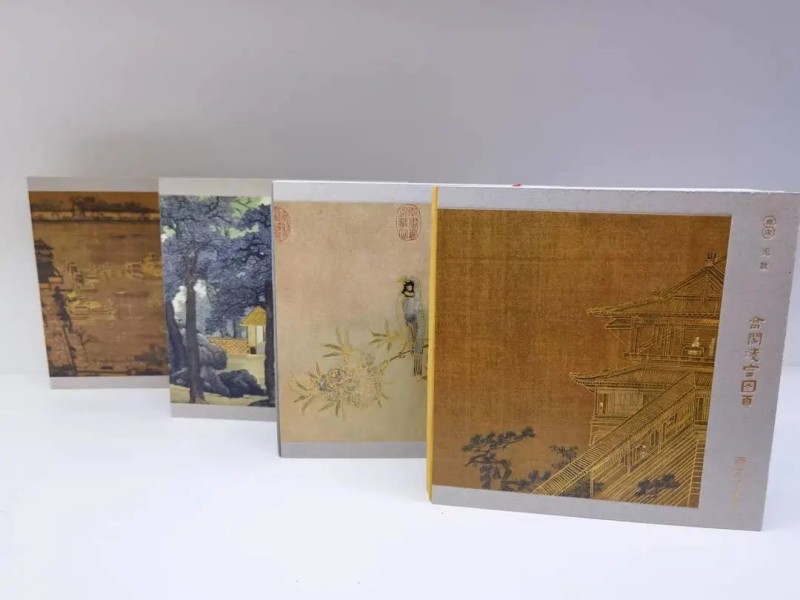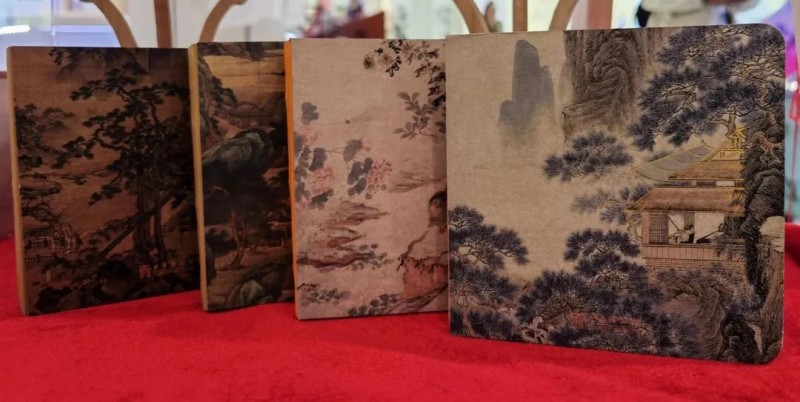 这两款产品设计灵感均来自馆藏书画作品,设计师节选了画作中的部分画面,将烫金描边的表现形式嵌入其中,在各种角度观赏都色彩纷呈。硬壳精装封面,缝线装订,内页穿插画作元素。手掌本,小巧精美便于携带,大方本,颜值担当。