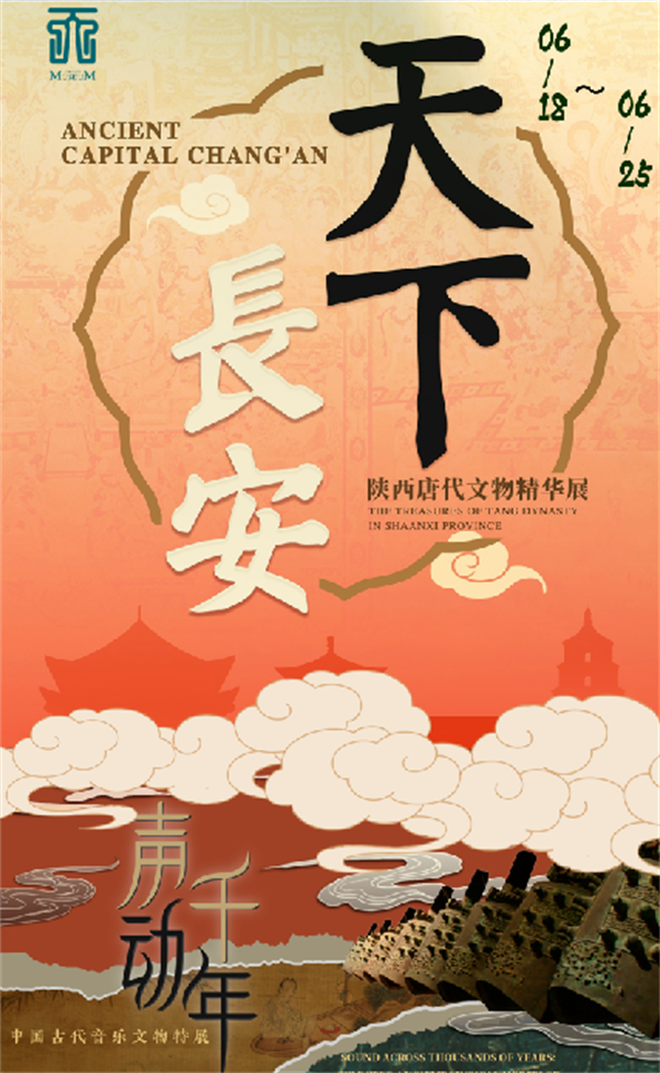 票价:20元(包含“声动千年——中国古代音乐文物特展”和“天下长安——陕西唐代文物精华展”门票各一张)