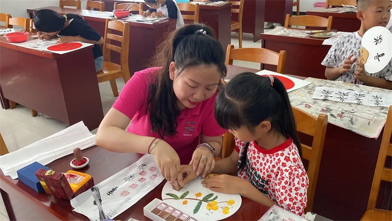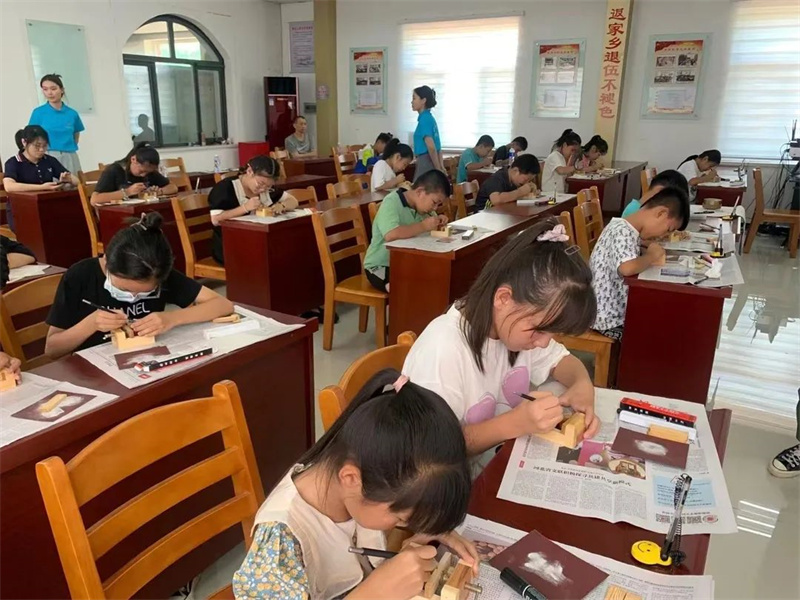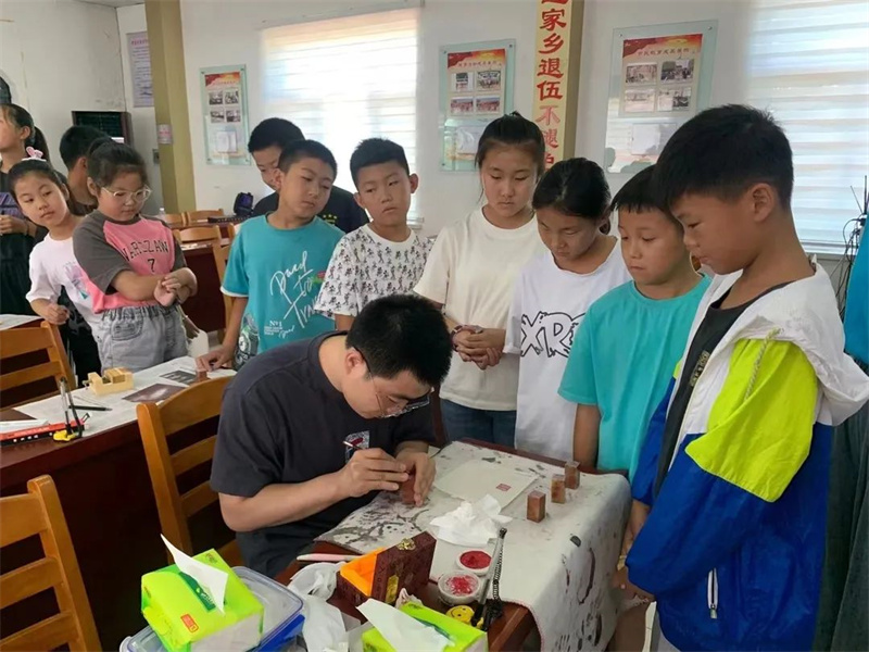 此次夏令营活动为期三天,天津美术馆“行走的美术馆”小分队对红星村青少年篆刻、书法、写意花鸟等课程进行培训。小分队的老师们耐心地从基础入门知识开始讲解,孩子们认真聆听,学到了很多新技能,提高了动手能力,陶冶了艺术情操,度过了一个有意义的假期。