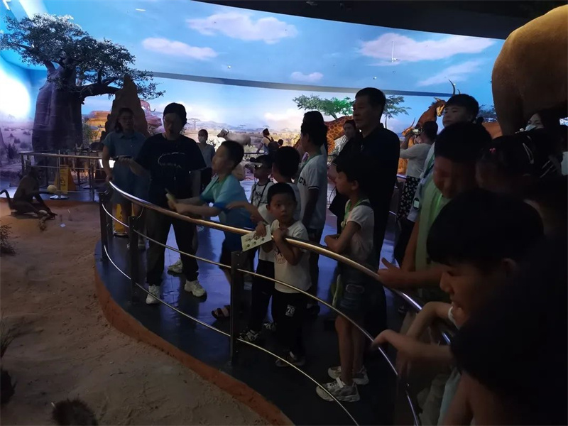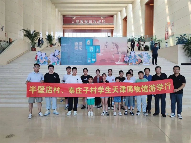 7月20日,12名蓟州区杨津庄镇半壁店村及秦庄子村学生在村支部书记、天津博物馆驻村工作队的有序组织下前往天津博物馆、天津自然博物馆、天津万象城开展为期一天的公益研学活动。孩子们首先来到天津博物馆参观“耀世奇珍——馆藏文物精品陈列”“中华百年看天津”展览。在这里,孩子们近距离欣赏到天津博物馆藏珍贵历史文物,通过展览中一件件精美的文物,感悟灿烂厚重的中华优秀传统文化,学习了解天津在中国近代的发展进程中的历史意义和重要地位,让孩子们更加深入的感知故土乡情。