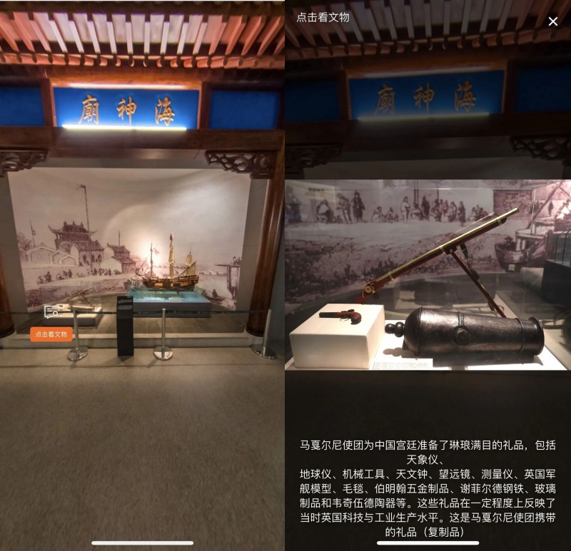 基本陈列“天津人文的由来”所有陈列品一览无余,且不仅限于文字和音视频,【考古幕后】板块将文物发掘的过程嵌入其中,满足观众的好奇心和求知欲。而在基本陈列“中华百年看天津”展馆中,除了文物展品的数字化,还延伸嵌入了同场景VR链接,真正实现“此地”和“他方“的时空穿梭,更真实地还原历史现场。