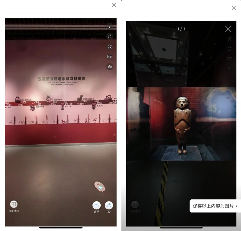 线上展厅,完整记录还原了线下展厅的样子,更进一步添加了许多原本线下展厅没有的玩儿法,比如伴随看展的背景音乐、音频导览、视频素材等,让观众拥有更富有“知识量”和“零距离”的观展体验。