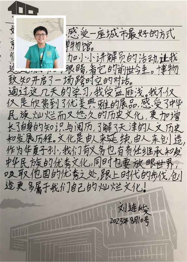 本次夏令营内容丰富,加强了小朋友们对博物馆的认识和了解,锻炼了口才和应变能力,提高了学习博物馆历史文化的信心。我们的“小小讲解员”都将心得体会都呈现在了日记中,大家来一起看看吧~