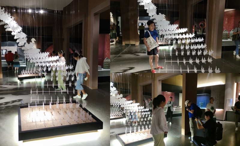 展厅中设置的艺术场景“千乘”,以波浪型结构和吊线悬挂的方式,展示了春秋时期晋国千军万马并驾齐驱的壮观场面,吸引了众多小朋友们的目光。