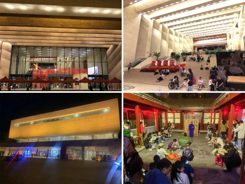 三馆结合馆藏优势、地方特色、节日氛围等因素,精心策划一系列丰富多彩、形式多样的社教活动,增强博物馆参观的体验性、互动性。中秋节当天,天津博物馆携手天津交响乐团举办“情满中秋节 月圆人团圆”主题音乐会。国庆节当天,上演“歌唱祖国”快闪活动,广大市民深情同唱一首歌,为祖国送上最真挚的祝福。