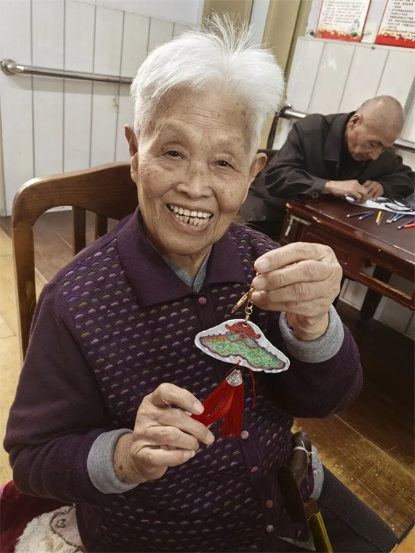 活动现场,工作人员为老人细致讲解了天津博物馆馆藏文物“粉彩蝙蝠纹磬”,让老人们感受文物的魅力,对传统文化有了进一步认识。同时,指导老人制作吉祥纹样热缩片钥匙链,以此表达对老人福寿绵长的重阳节祝福。