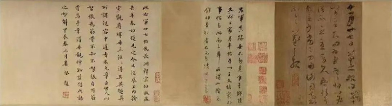 此帖幅面纵25.6厘米,横21.5厘米,草书五行,共51字。帖后有明代董其昌、娄坚等人跋记。这件珍品书体从容随意、沉着流动,是探讨王羲之书风相当可靠的资料。书信虽短,却不仅具有极高的书法意蕴,亦道出了挚友间的深厚感情,令观者得以感受到大书法家的生活气息。
