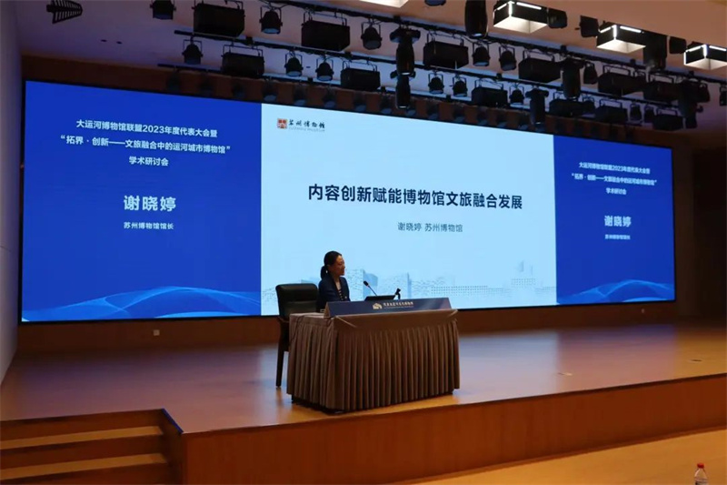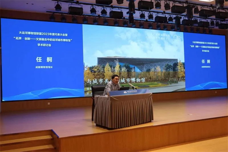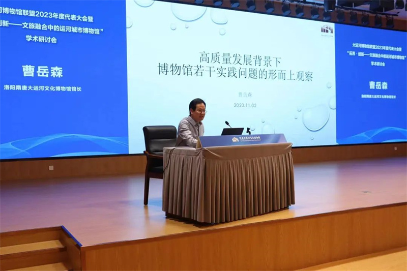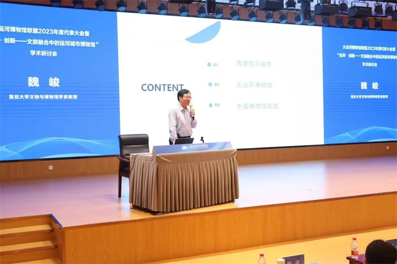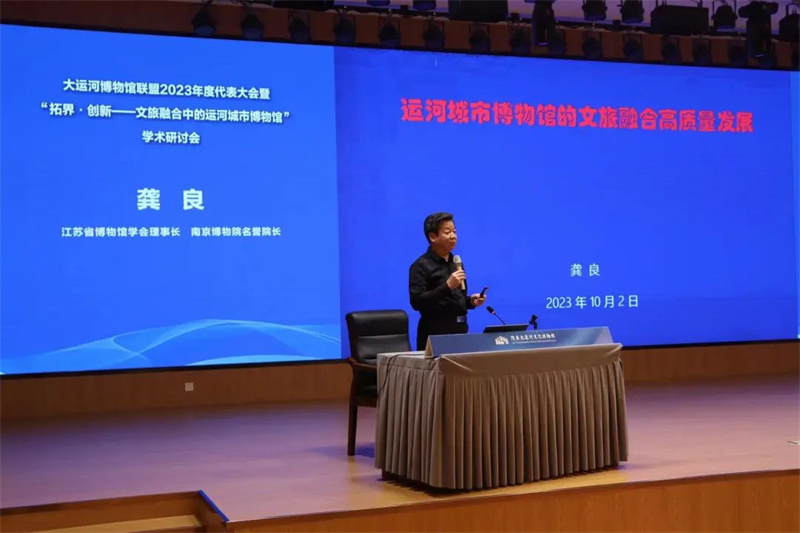 在“拓界·创新——文旅融合中的运河城市博物馆”学术研讨会上,中国博物馆协会理事长刘曙光,江苏省博物馆学会理事长、南京博物院名誉院长龚良,苏州博物馆馆长谢晓婷,成都博物馆馆长任舸、浙江省博物馆副馆长蔡琴,复旦大学文物与博物馆学系研究员魏峻, 洛阳隋唐大运河文化博物馆馆长曹岳森,北京艺术博物馆馆长陈静等10位专家进行了主旨发言。