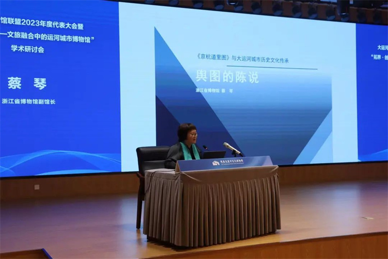 蔡琴的发言中着力介绍了浙博所藏《京杭道里图》,论述了博物馆作为历史文化的收藏者,应理解图绘特点并将图中信息转化为展览语言,力求在古今重叠型历史城市的发展中,切实表达出城市形态和社会网络的延绵传承,洞悉先人对古代城市规划、认知和传承方面的创造性智慧。