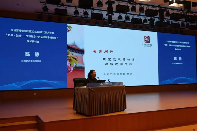 陈静在发言中从运河明珠、古刹新生和与美同行三个方面阐述了北京艺术博物馆(万寿寺)赓续运河文脉的路径。