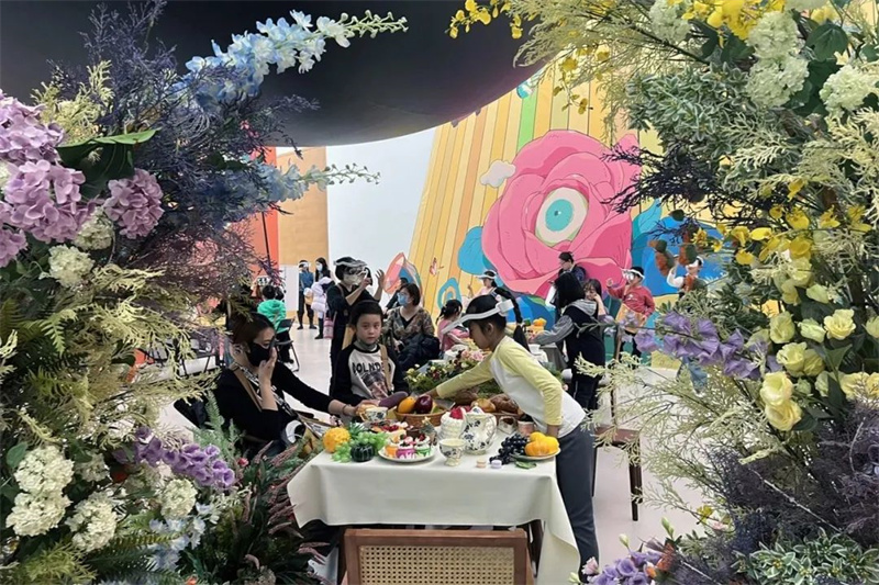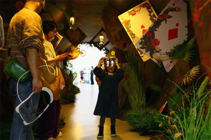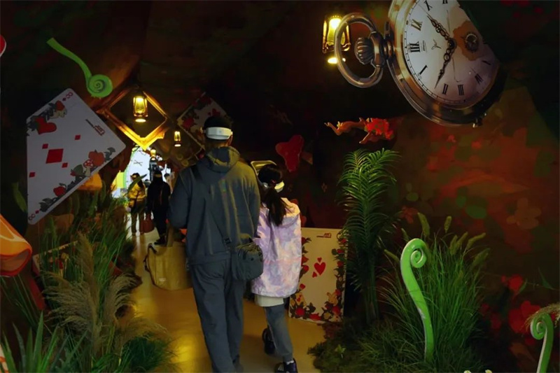 周末一早,观众们便在展厅门口排起了长队,迫不及待地等待进入“爱丽丝”的梦幻世界。