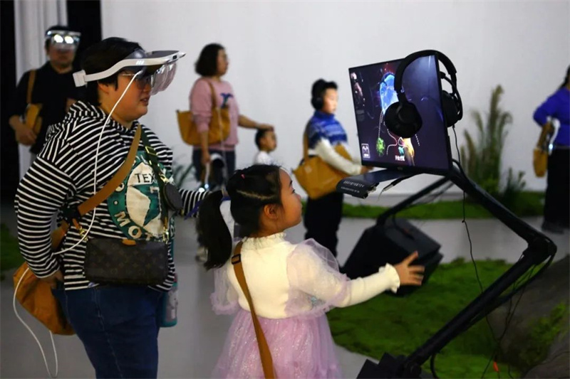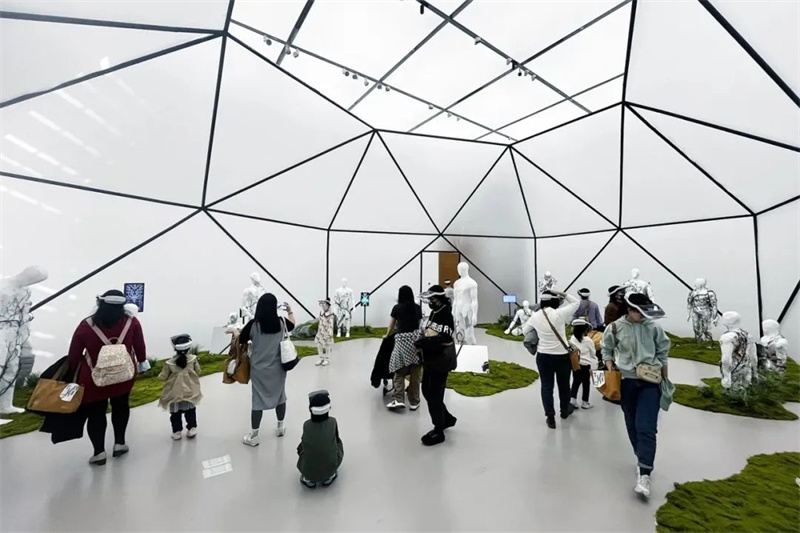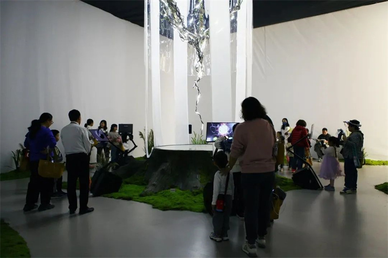 在志愿者的引导下,观众们佩戴MR眼镜,穿越“树洞之门”来到“意识种子库”,窥探万物的生长规律,在“造物之境”尽情发挥想象力与创造力,亲手“创造”一个个“数字生命”,与它们在“新月空间”中尽情嬉戏畅游。