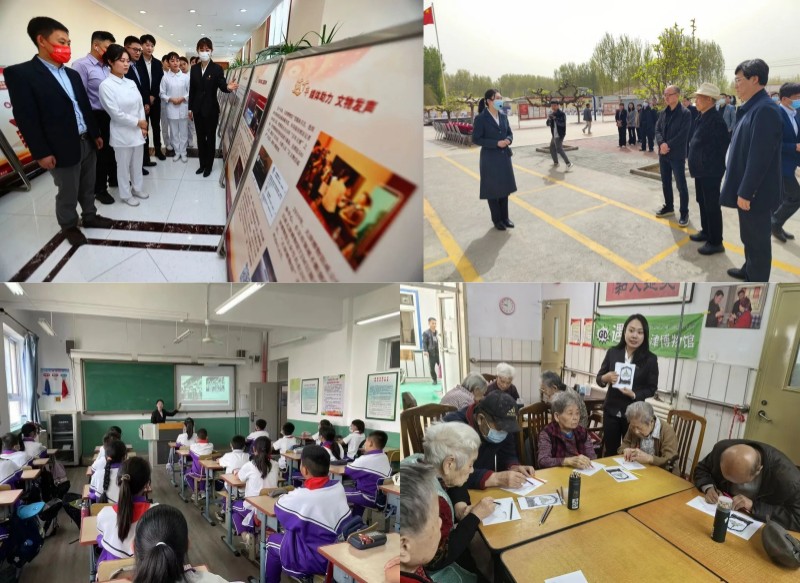 天津博物馆坚持以人民为中心的发展思想,积极开展“七进”活动,将展览内容、时事热点浓缩为一场讲座、一次流动展览、一项文化体验活动等,在天博宣传教育部成员的积极策划下,送进社区、学校、企业、乡村、军营、机关、网络,打通宣传群众、教育群众、关心群众、服务群众的最后一公里,让老百姓充分享受到公共文化资源的福利,通过博物馆的流动宣传让文物“活”起来。
