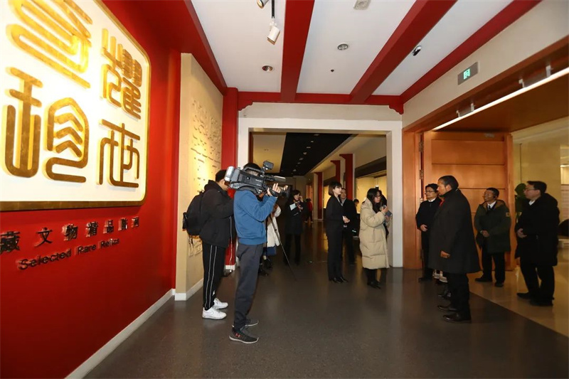 随后,博特斯副部长一行参观了“耀世奇珍——馆藏文物精品陈列”,近距离欣赏了中华文明之瑰宝。讲解员向来访嘉宾说明,“这些展品是从20余万件馆藏文物中精选出来的,涵盖青铜器、书法、绘画、玉器、玺印等。”