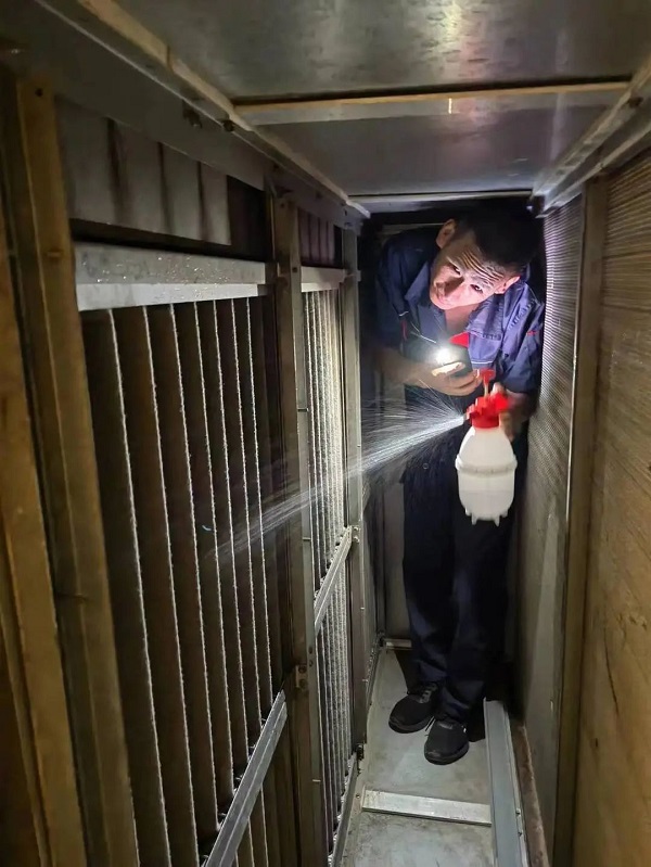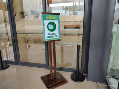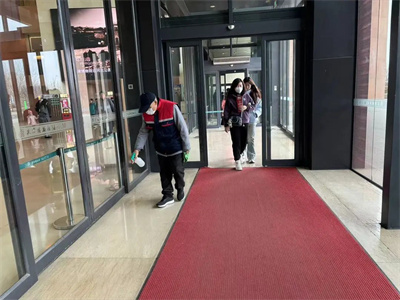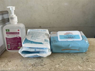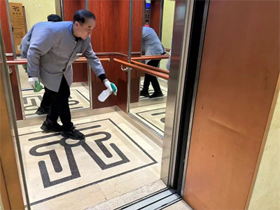 在馆正门入口处设置提示牌,提示观众进馆后请合理佩戴口罩,文明观展。在一楼服务台、文创店为观众免费提供一次性口罩、免洗手消毒液、消毒湿巾,“护航”观展旅程。行政管理部在原有地面、展品保洁的基础上,对馆内观众使用率较高的公共设施:电梯、卫生间、语音导览租借机、自助储物柜等设施设备加大清洁消毒频次,增加公共区域清洁卫生次数。在饮水机处,卫生间等地方同步增加放置免洗消毒液。保持空调送、排风口经常清洁,做到表面无积尘和霉斑。在咖啡厅食用简餐时,工作人员为观众送上免洗手消毒液,让观众安心使用。