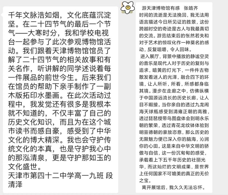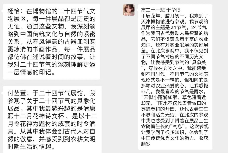 在学生们的课后留言中,我们不难感受到博物馆课程给学生带来的启迪。天津博物馆将继续开展“板凳上博物馆”系列课程,深挖历史文化背后的价值,有效利用博物馆资源,为青少年提供多元化、多层次公教活动,打造缤纷多彩的课堂模式。