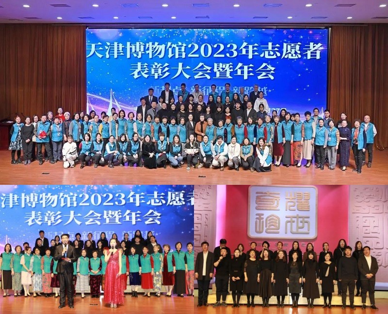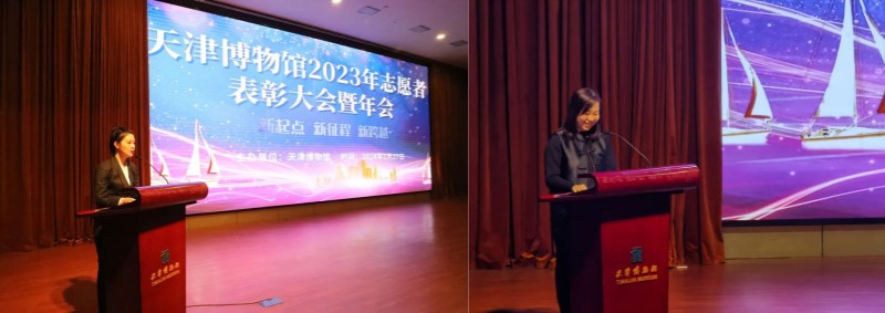 天津博物馆2023年志愿者表彰大会暨年会于1月27日在报告厅举行。馆领导于健、姚旸,宣教部主任李玫出席会议并为志愿者颁发荣誉证书。总结大会上,宣教部李晓静同志回顾了志愿者团队一年来的工作和取得的成绩。