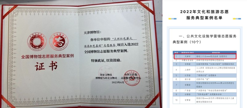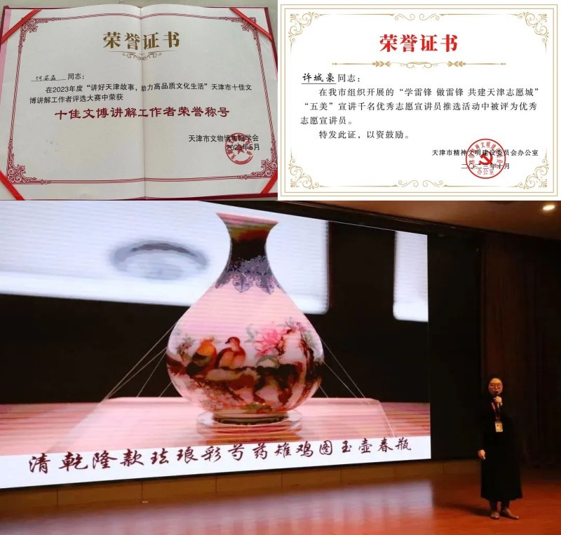 2023年也是志愿者个人收获满满的一年,青年志愿者何姿岳在“讲好天津故事 助理力高品质文化生活”天津市十佳文博讲解工作者评选大赛中荣获“十佳文博讲解工作者”荣誉称号。
