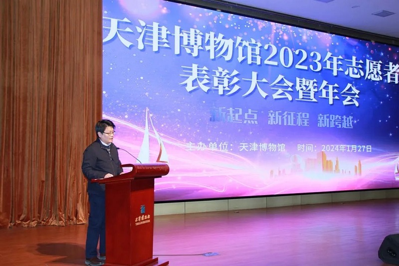 天津博物馆馆长姚旸代表馆领导致辞,肯定了一年来天博志愿者的工作成果,对获得表彰的组织和志愿者表示祝贺。他说:2023年,是文化事业和文化产业繁荣发展的一年。传统文化以更生动、更创意的方式受到越来越多人的追捧,“到博物馆去”也成为越来越多人参与体验的新风尚。博物馆工作的高质量发展离不开高质量的志愿者团队,一年来,我们的志愿者作为传承文明、弘扬正气的美丽使者,服务观众、牵手历史的文化桥梁,已经成为见证天津博物馆事业发展、助推博物馆发挥社会效益的重要力量。