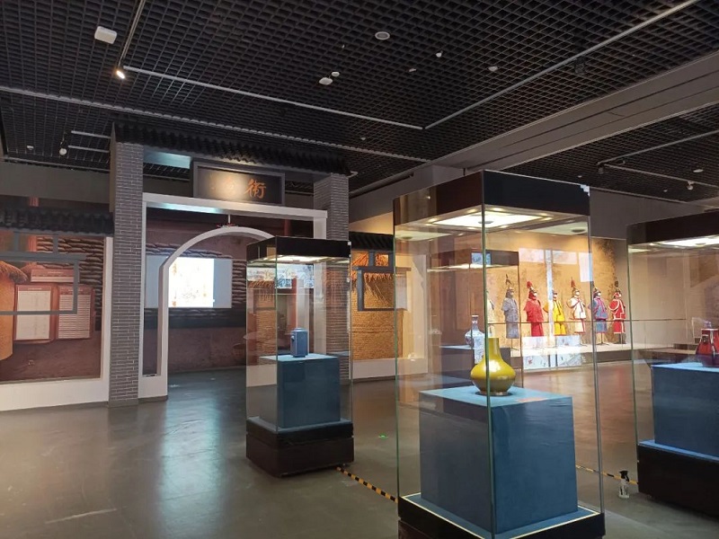 展览秉承着空间利用最大化、展示手段多样化的设计理念,采用交错贯通的设计手法,搭配五种颜色,展线通透流畅。展厅内还设计了6个文化景观,包括卫仓、八旗、大红桥、盐运、水西庄、戏台,以及4处数字化视频互动场景,让观众在互动中,走近大运河、了解运河历史的文化底蕴。
