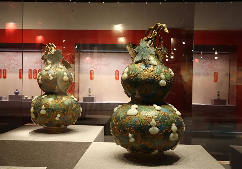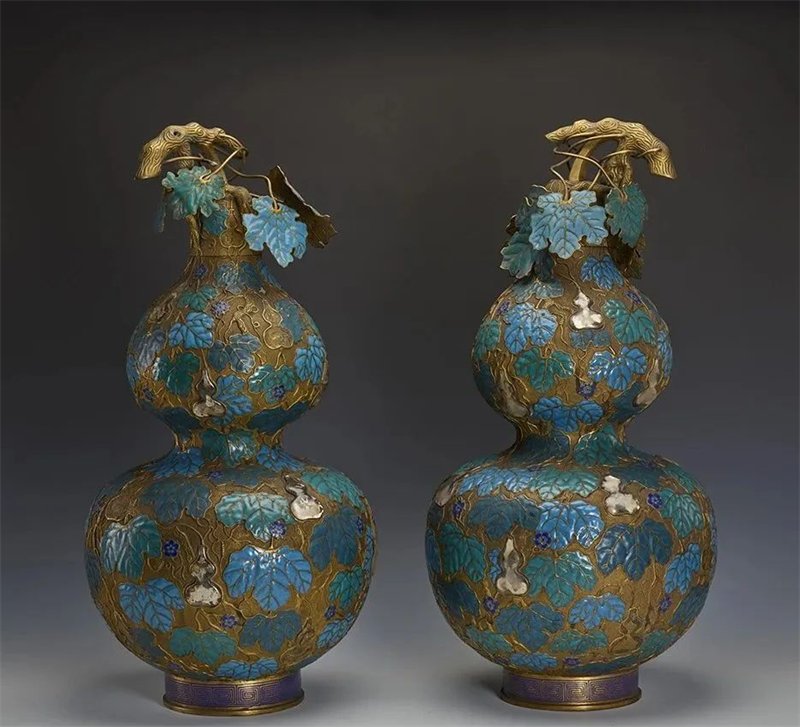 清掐丝珐琅嵌玉石葫芦万代纹葫芦瓶