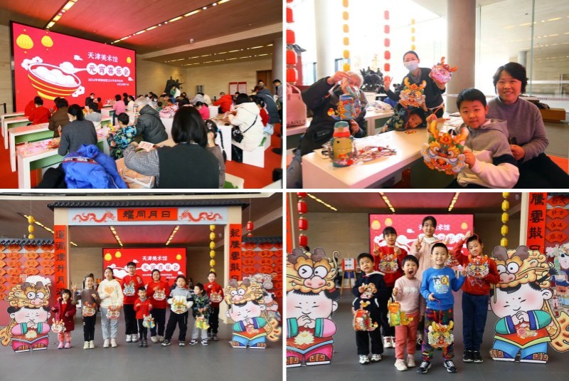 在天津,美术馆里不只有展览,还有丰富的公共教育活动。龙年新春期间,在博物馆、美术馆度过年味浓郁的假期成为不少天津市民和游客的新选择。甲辰元宵佳节当天,天津美术馆里张灯结彩、热闹非凡,“元宵喜乐会”系列活动正在如火如荼的开展。看展览、做花灯、捏泥人、猜灯谜,热闹的文娱活动通通安排。大批市民和游客观众抓住春节的尾巴,到天津美术馆里闹元宵, 共同度过了一个充满诗意与浪漫的上元节,体验别样的艺术盛宴。