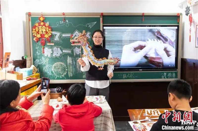 2月24日是中国传统节日元宵节,为迎合甲辰龙年的主题,李叔同故居纪念馆开展了“龙行龘龘,欢度元宵——龙年彩灯DIY”活动。王在御 摄