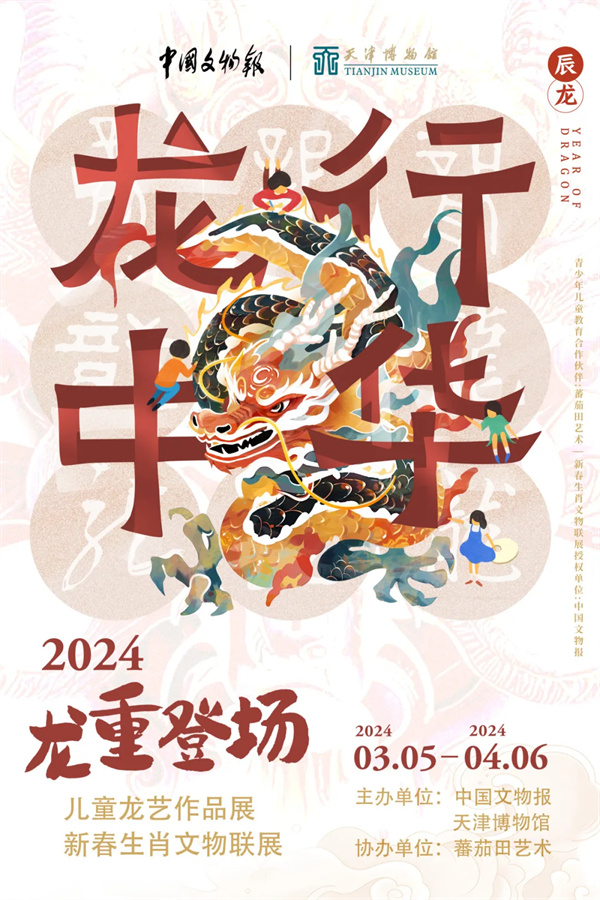 由中国文物报、天津博物馆主办,蕃茄田艺术协办的2024“龙”重登场—儿童龙艺作品展,自3月5日开展以来获得了大家的一致好评。累计接待观众达10万人次,围绕展览推出了12场丰富多彩的社教活动,讲解28场,累计服务观众2000余人次。