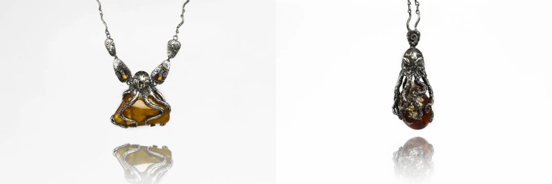 《章鱼》项链 (材质:波罗的海琥珀、银)