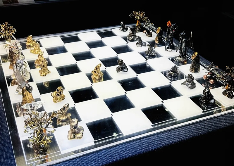 艺术家Iwona巧妙地将琥珀与手工艺结合起来,制作出这套世界上独一无二的哥特风童话象棋,用充满想象力的工匠语言,描绘出一幅两军交战的传奇画卷。该作品曾在中国国家博物馆、贵州、云南和托伦博物馆展出。