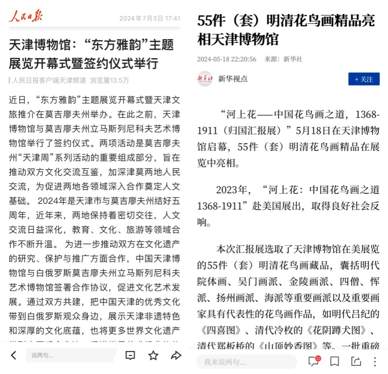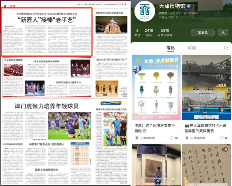 近年来,各地文旅的“顶流”非博物馆莫属,约上“看展搭子”一起参观博物馆,成为越来越多年轻人的社交新方式。“在新形势下,天津博物馆充分把握住发展机会,乘风而上,多措并举,助力文博‘破圈’传播。”姚旸馆长说,“近三年来,天津博物馆利用微博、微信、小红书等社交平台积极开展宣传工作,各平台‘粉丝’数量突破百万。同时,我们坚持不断创新宣传方式,挖掘文物身上潜在‘破圈点’,让陈列在展厅中的文物以更加生动、有趣的方式展现在观众面前,取得了显著成效。另一方面,我们积极谋求与央视等主流媒体的深度合作,有效提升了博物馆的影响力与知名度。‘活’起来的文物,‘火’起来的博物馆,不仅让观众感受到了历史的厚重和文化的魅力,还激发了人们对中华优秀传统文化保护和传承的热情。”