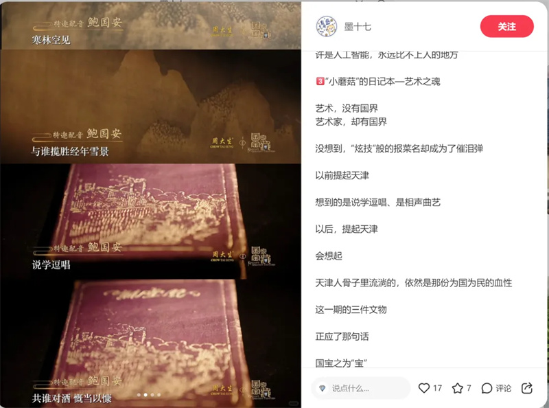 在节目预告发布后,很多观众对天津博物馆选送“小蘑菇日记本”这件文物感到不理解,觉得天津博物馆还有很多珍贵的一级文物可以登上《国家宝藏》节目。