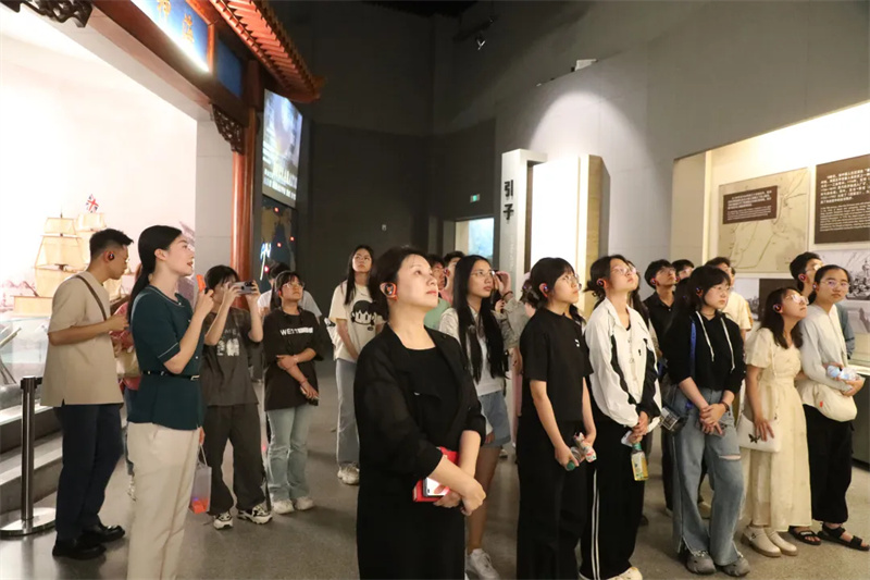 签约授牌仪式结束后,天津博物馆精心安排了一场参观学习活动,在讲解员专业生动的引导下,天津大学马克思主义学院的师生们有序进入“中华百年看天津”展厅。该展览通过珍贵的文物、详实的图文资料以及多媒体互动体验,全方位、多角度地展现了天津自近代以来的历史变迁与城市发展,特别是中国共产党在天津的革命斗争历程和辉煌成就。