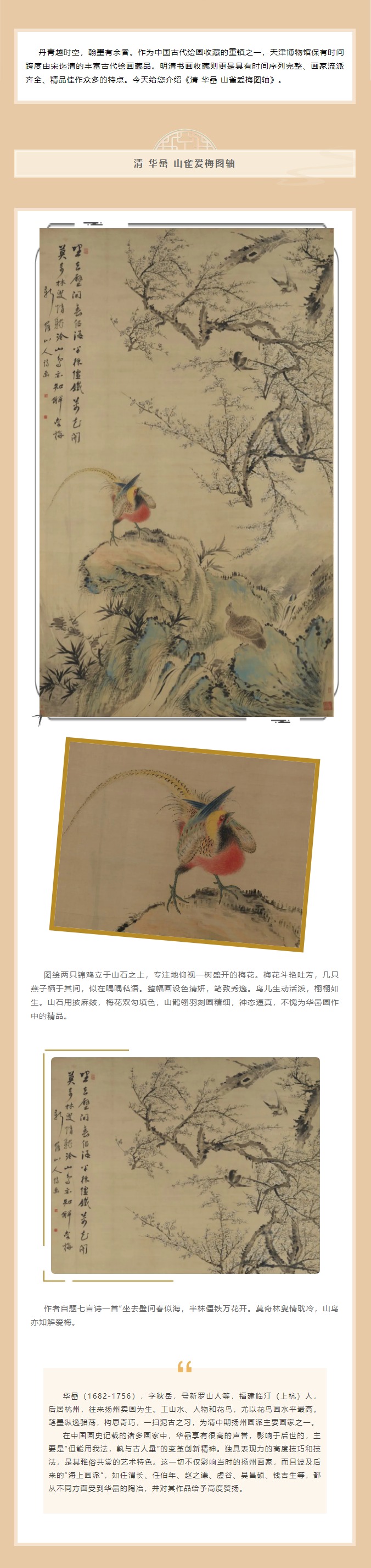 天博藏珍丨清 华喦 山雀爱梅图轴