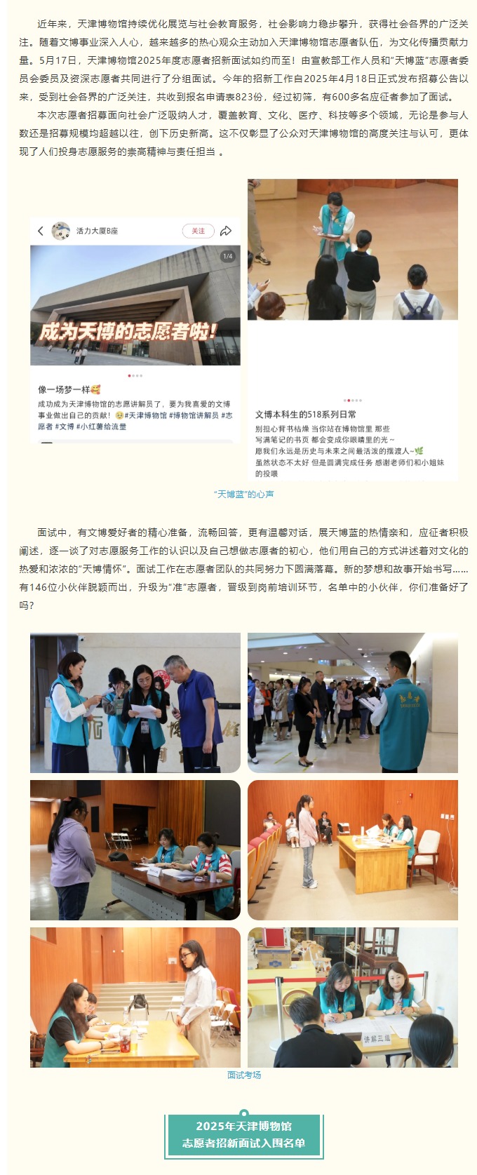欢迎加入“天博蓝”大家庭——2025年天津博物馆志愿者招新面试入围名单公布