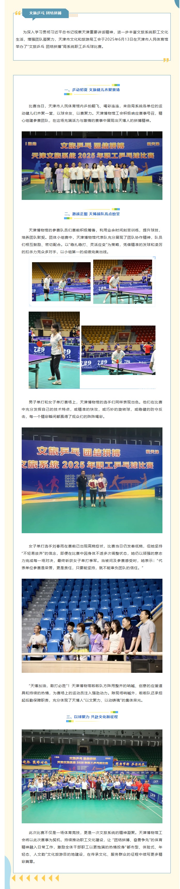 天津博物馆工会参加2025年“文旅乒乓 团结拼搏” 文旅局系统乒乓球比赛