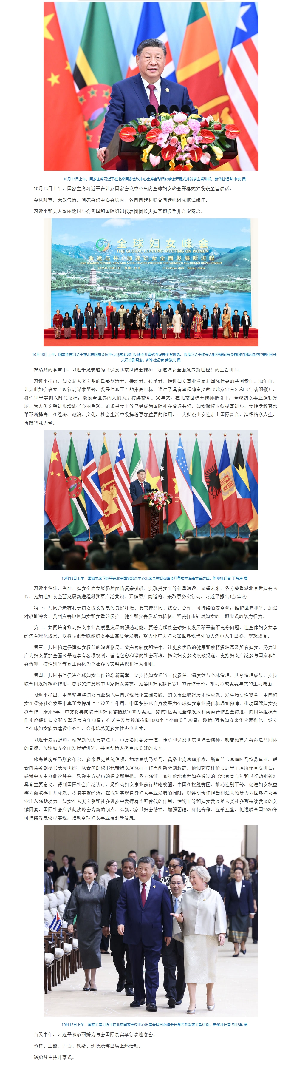 习近平出席全球妇女峰会开幕式并发表主旨讲话