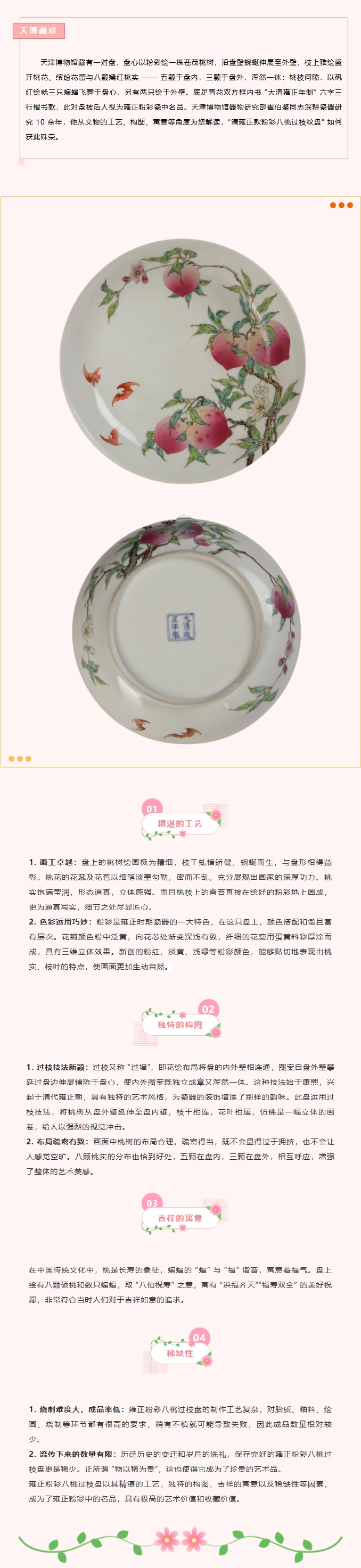 天博藏珍丨为什么"清雍正款粉彩八桃过枝纹盘"被称作雍正粉彩瓷中名品呢?