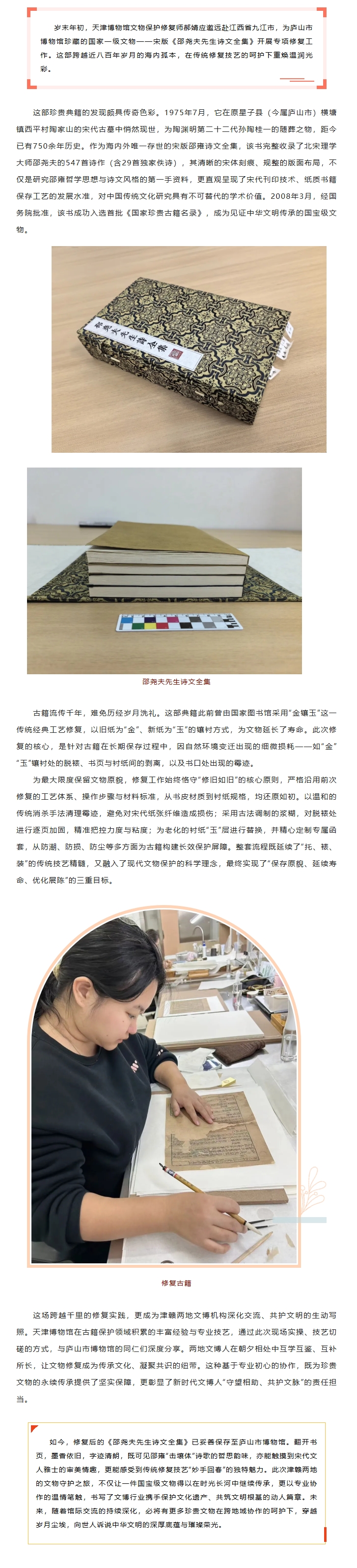 津赣文博携手守护 宋版孤本重焕神采
