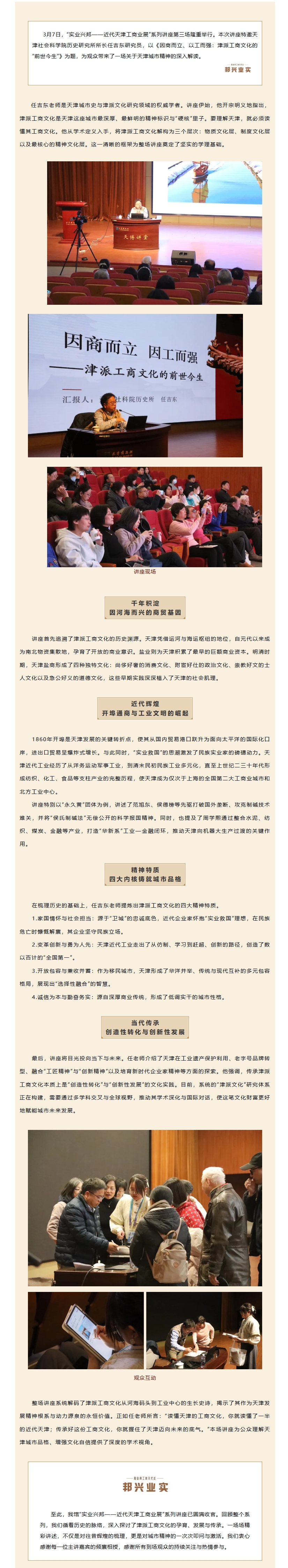 “实业兴邦”系列讲座第三场圆满落幕 系统解码津派工商文化的前世今生