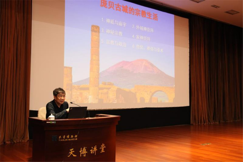 9月23日,南开大学王以欣教授应邀走进天津博物馆,以庞贝古城的历史背景为主线,重点介绍其宗教生活中的风俗与习惯,使听众充分感受到希腊神话对罗马神话的影响与渗透。