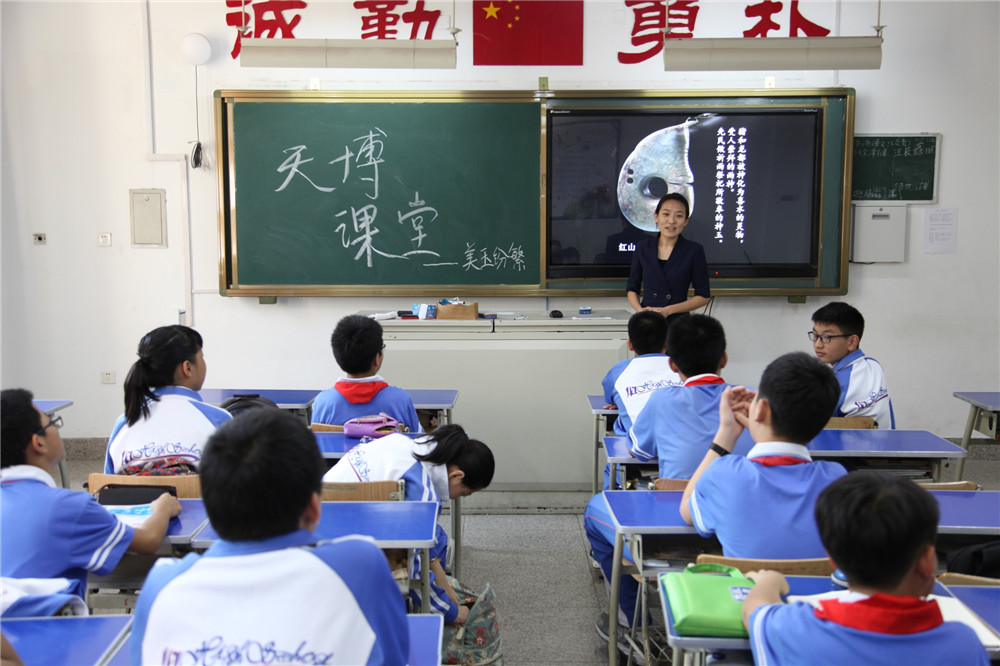 9月26日,天博讲解员为41中的学生们带去“美玉纷繁”讲座,以天博馆藏玉器为基础,通过丰富的图文资料展示中国古代玉器的发展演变和功能价值,引导学生们感受玉器所蕴含的独特文化魅力。