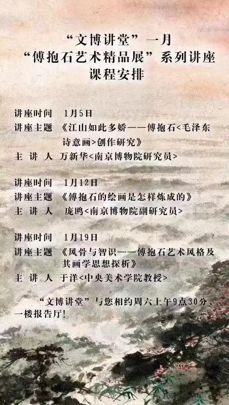 1月12日,南京博物院副研究员庞鸥老师将继续为大家解读年度大展“其命维新——傅抱石的艺术世界”,详情请关注天津博物馆官方网站及微信公众平台。