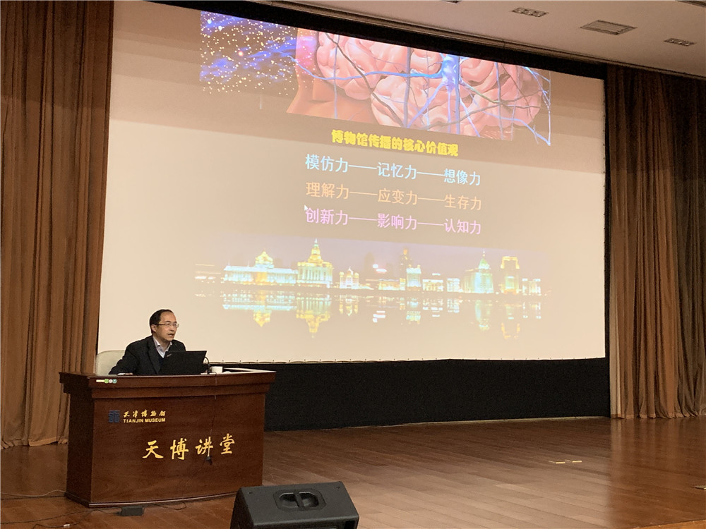 上海市历史博物馆(后简称“上历博”)是综合反映上海地方历史的地志性博物馆,上世纪50年代开始筹建,其临时馆址几经变更,于2018年3月选择新址重新对外开放。讲座中,胡江馆长向听众介绍了上历博的选址,它原为上海跑马总会大楼,建筑本身便具有很高的历史价值。目前馆内陈列主要是结合场馆建筑特点,遵循“以城市史为脉络,以革命史为重点”的原则,全面梳理上海历史脉络,展现城市发展各个历史时期的重要节点和重大革命历史事件。在解读上历博这座城市博物馆的同时,胡馆长将话题引向整个国家乃至国际视野当中,借助国内外生动事例使大家知晓一座博物馆的发展不仅是文化的体现,更是与政治、经济紧密相连的,决策与价值观导向为当今博物馆发展注入了强大动力。博物馆在各种因素的影响下形成了自身的核心价值观,而这一核心价值观的形成并不是一个简单进程,其模式主要是人类通过模仿、记忆形成想象力,通过理解、应变形成生存力,通过创新影响形成认知力,从而使博物馆真正成为历史发展、文明进步的见证者。